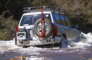 - Wheel/single jerry can carriers can be optioned on either side of the rear bar on most vehicles