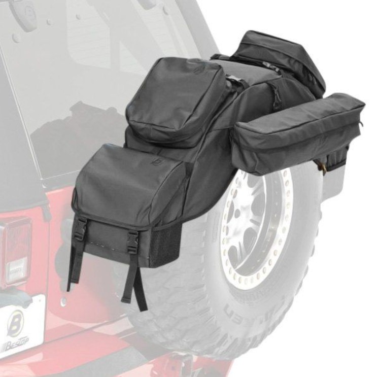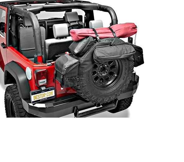 Bestop Spare Tire Organizer adds smart storage to unused space. With multiple pockets, it’s perfect for tools, gear, water & more—trail-ready and durable.