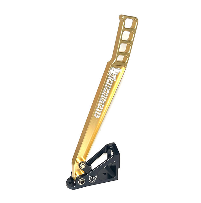 Our handbrake features a custom lever that stands tall at 18″, just tall enough to stand out but not so tall it gets in the way. The height of this handle puts the custom designed pistol grip within easy reach of the wheel so you’re hand is always ready to get back to counter steering. The handle is meticulously CNC machined from solid 6061 aluminum, then anodized either red, gold or black with our logo laser etched.