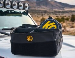 Organize, store, and protect your light covers or other off-road gear with the KC Cover Keeper Bag, a versatile and robust solution for all your storage needs. Crafted with adventure in mind, this bag is not just for storing light covers but can also be an essential tool and supply bag. Its durable design, coupled with the iconic black and yellow KC color scheme, makes it a must-have for any off-road enthusiast.