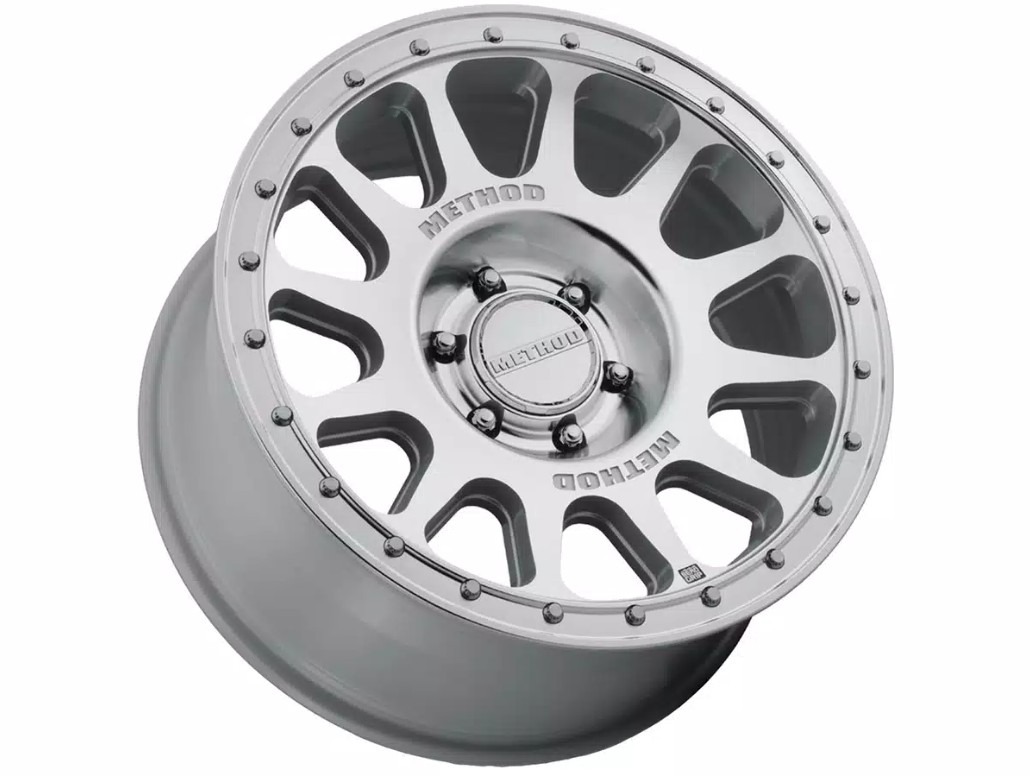 The wheel is covered in a machined finish that is offset with a simulated beadlock bead ring around the outer edge. The center cap is embossed with the Method logo to complete the look.