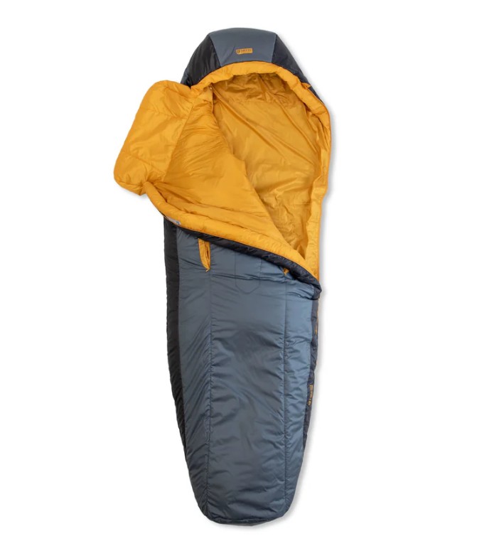 NEMO EQUIPMENT Forte is a 3-season, 100% recyclable sleeping bag with Spoon shape, Thermo Gill™ vents & Zerofiber PCR fill sustainable comfort for side sleepers