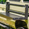 The Trax Clamp base is made from 3mm aluminum, and the grab brackets holding the Trax are made from stainless steel. The Clamp can be mounted with M8 Bolts onto canopy doors or flat surfaces. It also fits on the Quick Pitch Spare Wheel Cargo Mount.