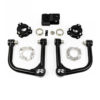 ReadyLIFT’s 6061-T6 billet Aluminum front spacers are designed to achieve the maximum lift height while avoiding a ball joint or tie rod bind when the suspension articulates throughout the entire range of travel on and off-road. The addition of the high-strength 4130 alloy steel preload spacer aids in the packaging of the larger-diameter tires. The kits feature two front billet Aluminum strut spacers CNC-machined for a precise fit, two high-strength steel offset rear spacers powder coated to resist the elements, and a .250″ steel heavy-duty rear track bar bracket to achieve proper suspension geometry when lifted.